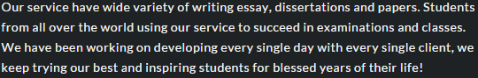 In our company, we understand that when you seek for help from essay writing service, you expect that your essay will be the best. You want quality, originality, creativity, and what is probably most important you want your professor to be satisfied with your essay. Ordering essay from our company you can be sure that you will get all of these qualities in your essay. Our writers are professional who know how to meet all your demands and give you what you want.